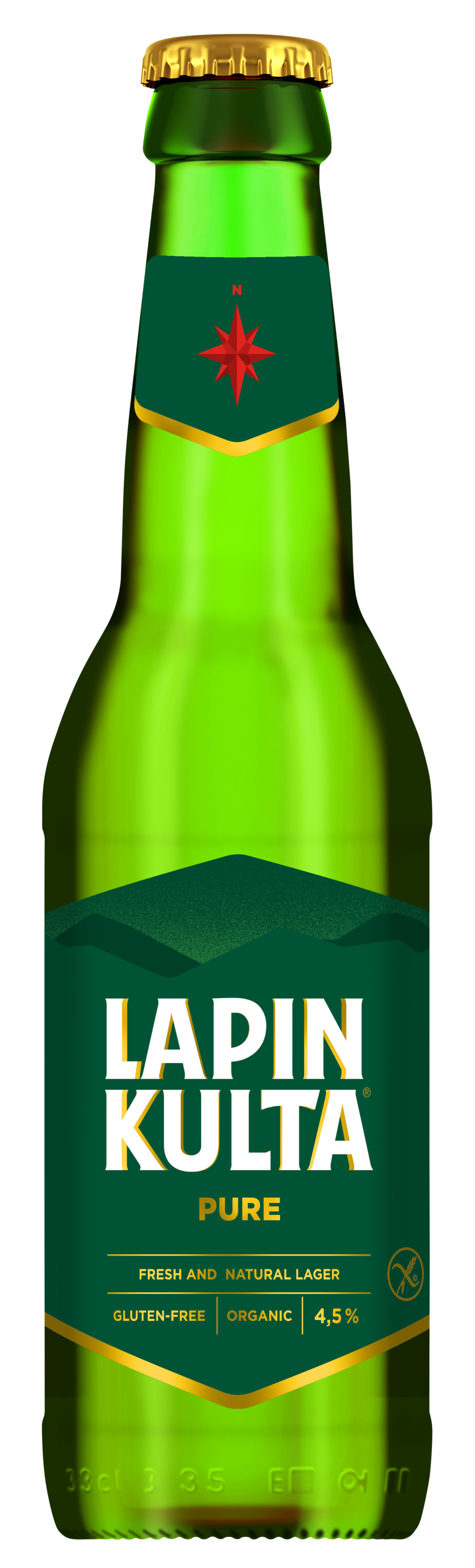 Lapin Kulta Pure Luomuolut 4,5% on raikas ja täyteläinen gluteeniton lager- olut. Sen valmistuksessa on käytetty 100%:sesti suomalaista luomuohraa; tästä syntyy oluen puhdas maku. Täydellinen luomuolutnautinto syntyy kun viilennät oluen 4-7 -asteiseksi ja kaadat sen hiljalleen puhtaaseen lasiin. Näin oluen pinnalle kehittyy tuhti, valkoinen vaahtokukka, joka säilyttää luomuoluen ainutlaatuiset aromit ja maun pitkään. Kuten muutkin Lapin Kulta oluet, niin myös Lapin Kulta Pure on täysmallasolut. Se sopii hyvin raikkaan kanasalaatin tai lohikeiton kaveriksi.