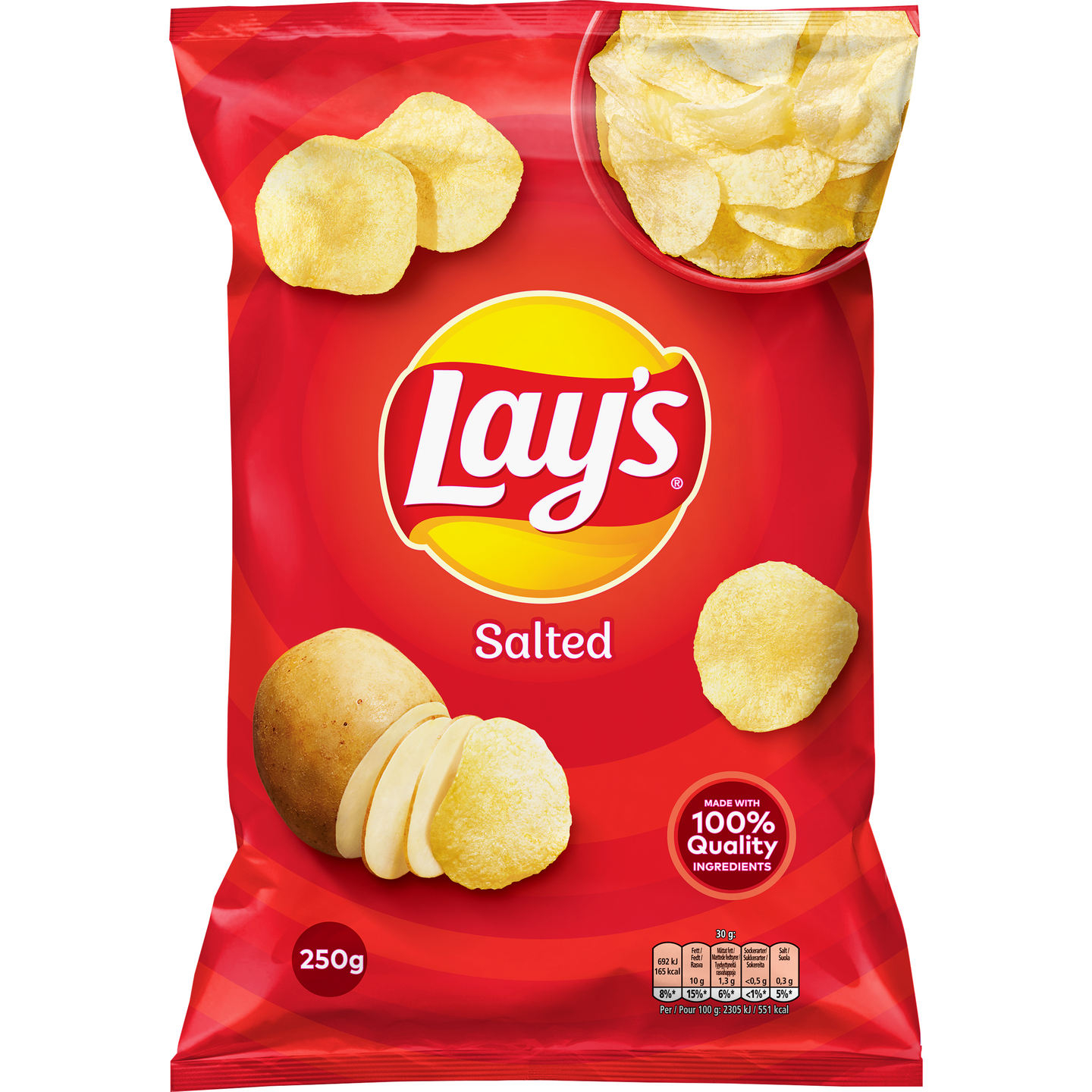 Ainoat ja alkuperäiset Lay’s perunalastut valmistetaan parhaista perunoista, jotka pestään, kuoritaan ja leikataan ohuiksi lastuiksi. Sen jälkeen ne keitetään kasviöljyssä ja lopuksi sipseihin lisätään suola. Täydellistä rapeutta ja vähän suolaa makua antamaan. Eivät sisällä keinotekoisia maku- eikä säilöntäaineita.