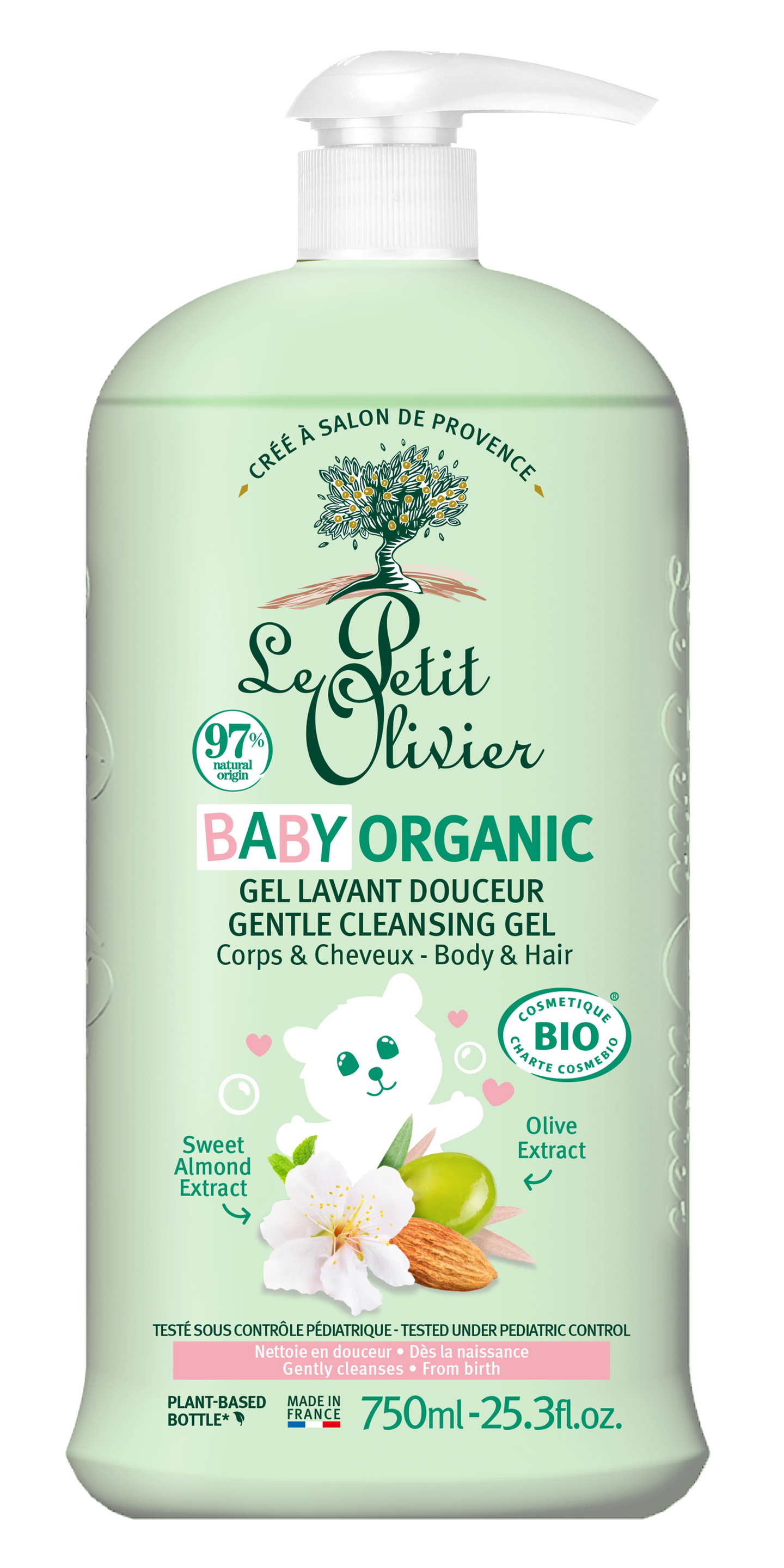 Le Petit Olivier Puhdistusgeeli vauvan vartalolle ja hiuksille 750ml