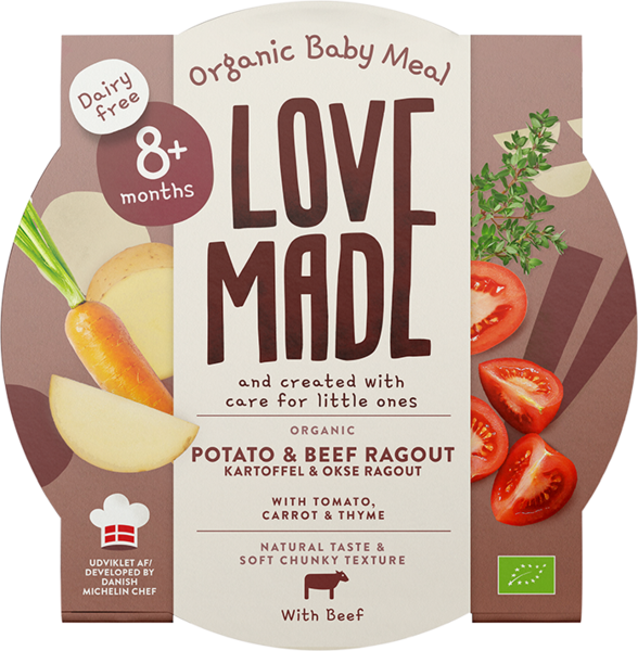 Omistautuneiden vanhempien ja Michelin-tähtikokin Tanskassa perustama LoveMade on luotu sitoutuen huolenpitoon. Meidän Luomu vauvanruokamme on kehitetty yhdistämällä mahtavat maut, luonnolliset rakenteet ja hyvä ravitsemuksellinen laatu pienokaistemme parhaaksi. Yksinkertaista. Mitään muuta ei ole lisätty, paitsi rakkautta. Hyvää ruokahalua!