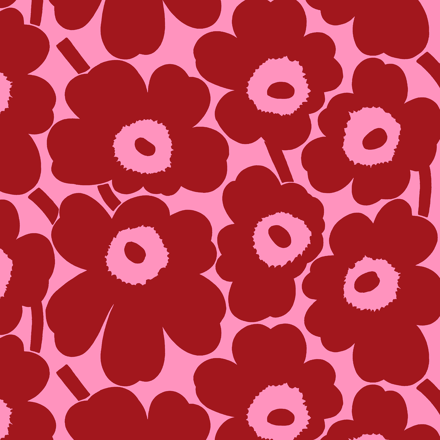 Suloiset Marimekon Mini Unikko lautasliinat pinkkipinkissä värityksessä. Alkuperäisen Unikko kuosin suunnitteli Maija Isola vuonna 1964. Kotimaiset lautasliinat ovat Havin valmistamat ja ne ovat painettu Imatralla 3-kertaiselle pehmopaperille. Lautasliinoille on myönnetty Avainlippu, Joutsenmerkki ja FSC.