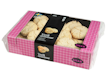 Sokeri, KAURAHIUTALEET (30%), margariini (palmu-,voipuun-,kookosöljy,vesi,suola,emulgointiaine rasvahappojen mono- ja diglyseridit, aromi, antioksidantti askorbiinihappo, elintarvikeväri beetakaroteeni), VEHNÄJAUHO, nostatusaineet(leivinjauhe, ammoniumdikarbonaatti) Saattaa sisältää pieniä määriä KANANMUNAA ja MANTELEITA.