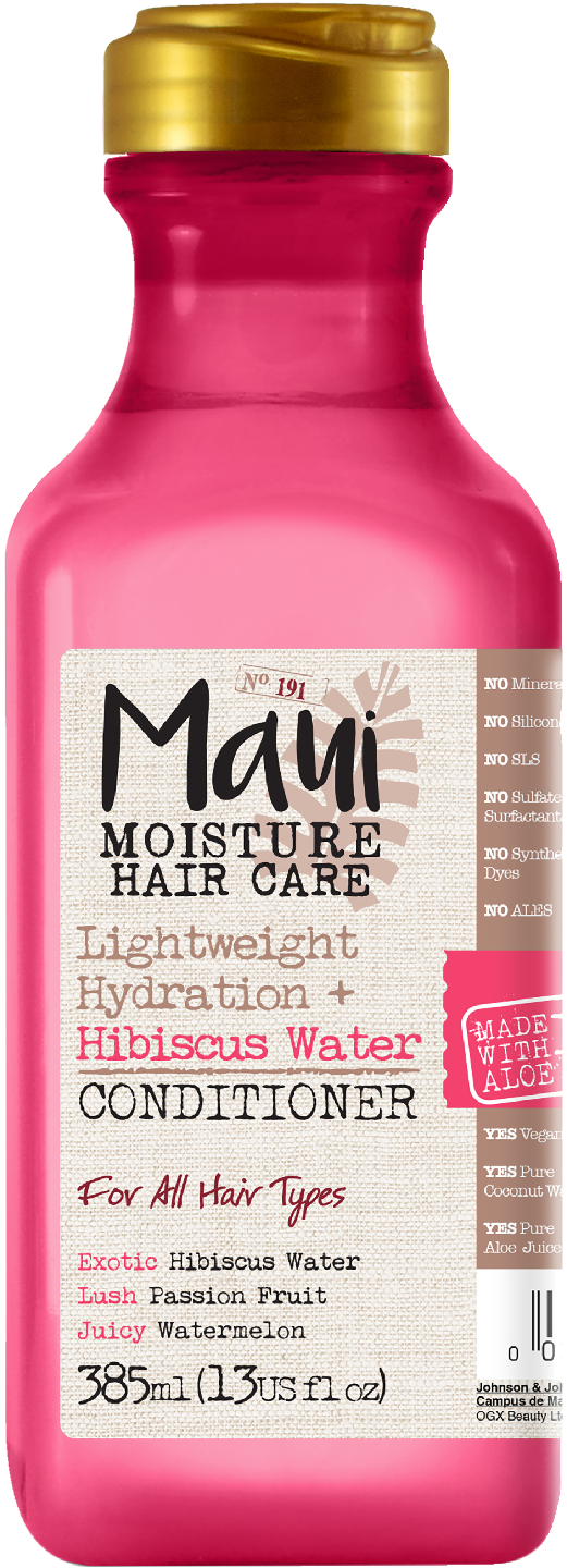 Maui Moisture Hibiscus Water hiustenhoitoaineen ensimmäisenä raaka-aineena on käytetty aloemehua ja lisäksi se on rikastettu puhtaalla kookosvedellä. Vastustamaton tuoksu ja koostumus takaavat hemmottelevan kokemuksen.