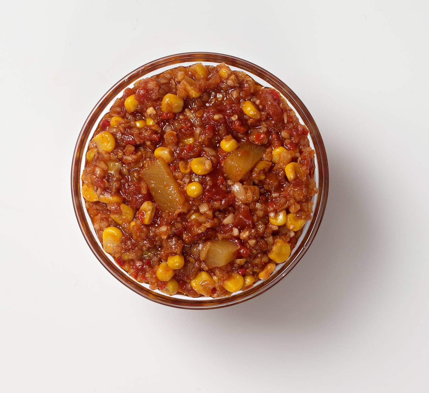tomaatti (31 %), ananas (11 %), punainen paprika, maissi, inverttisokerisiirappi, tomaattimehu (7 %), kuivattu sipuli, vesi, rapsiöljy, sitruunamehutiiviste, etikka, suola, rypäletiiviste, kuivattu valkosipuli, chipotle chili, happamuudensäätöaine (E330), säilöntäaineet (E202, E224 kaliumdiSULFIITTI), savupaprikajauhe, stabilointiaine (E509), sokeri, merisuola, hapettumisenestoaineet (E300, E220 RIKKIDIOKSIDI)