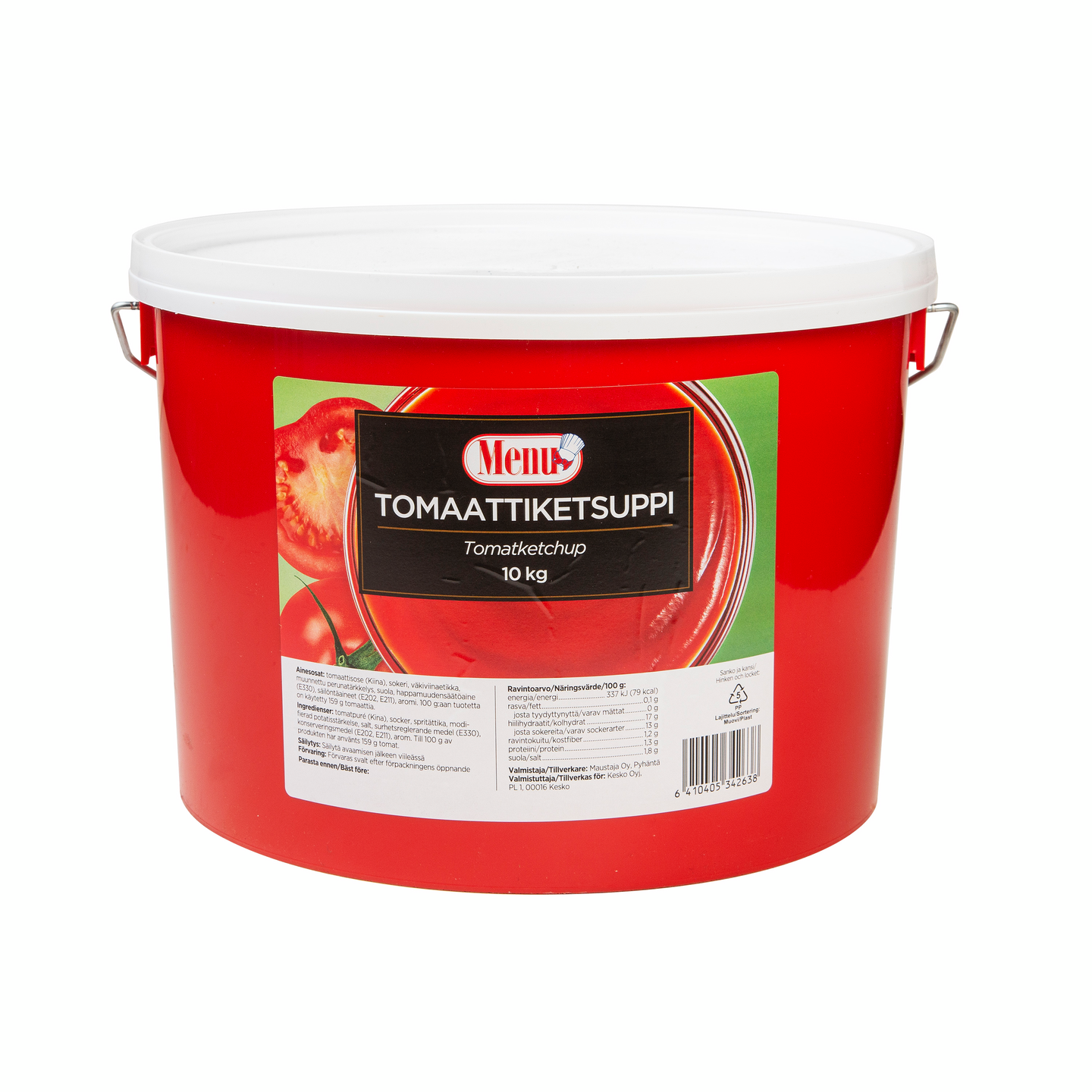 tomaattisose, sokeri, väkiviinaetikka, muunnettu perunatärkkelys, suola, happamuudensäätöaine (E330), säilöntäaineet (E202, E211), aromi.
