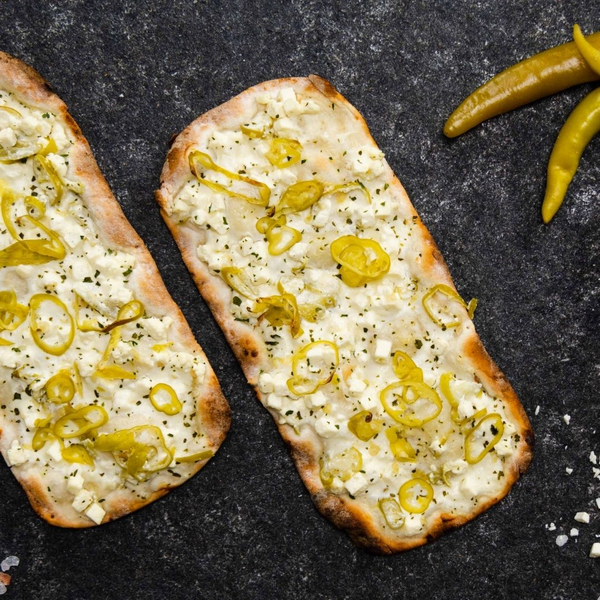 Ranskankerma 31% (MAITO), salaattijuusto 20 % (pastöroitu MAITO, suola, hapate, juoksete), VEHNÄjauho, vesi, pepperoni-paprika 5 % (pepperoni, vesi, suola, happamuudensäätöaine [sitruunahappo, etikkahappo], säilöntäaine [E211], hapettumisenestoaine [E223]), kasviöljy (rapsi), hiiva, suola, sokeri, persilja. Voimakassuolainen.