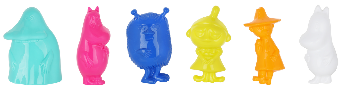 Älä tule paha kakku, tule hyvä kakku! Hiekkakakkujen tekeminen on suosittua puuhaa vuodesta ja vuosikymmenestä toiseen. Nyt on mahdollista valmistaa monta Muumilaakson asukasta samalla kertaa. Monivärinen hiekkamuottisetti, jossa on kuusi muumihahmoa muotteina. Muovimuottien hahmoina ovat Muumipeikko, Niiskuneiti, Pikku Myy, Nuuskamuikkunen, Mörkö ja Haisuli. Muotin korkeus on 10-12 cm. Muottien väreinä on keltainen, punainen, vihreä ja sininen. Hiekkaleikkeihin puistoon, kotipihan hiekkalaatikolle, rannalle tai vaikkapa kylpyhetkien leluksi!