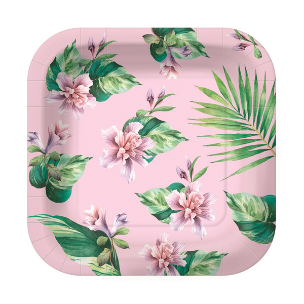 Neliökartonkilautanen 10kpl 23cm kukka vaaleanpunainen