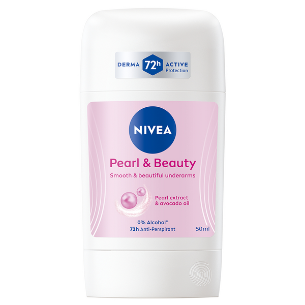 NIVEA Pearl & Beauty Deo Stick -antiperspirantti antaa tehokkaan ja luotettavan 72 tunnin antiperspiranttisuoja, joka hoitaa ihoa. Kainalot pysyvät koko päivän kuivina. Sisältää luonnollista alkuperää olevaa helmiäisuutetta ja avokadoöljyä. Hellävarainen ja hoitava koostumus pitää kainaloiden ihon sileänä ja kauniina. Mieto, houkutteleva tuoksu. Ei sisällä etyylialkoholia. Dermatologisesti testattu. Kierrätettävä pakkaus. Stick on formaattina kätevä myös matkaillessa; saat sen käsimatkatavaroihin ilman erillistä pakkaamista nestemäisten tuotteiden kiintiöön.
