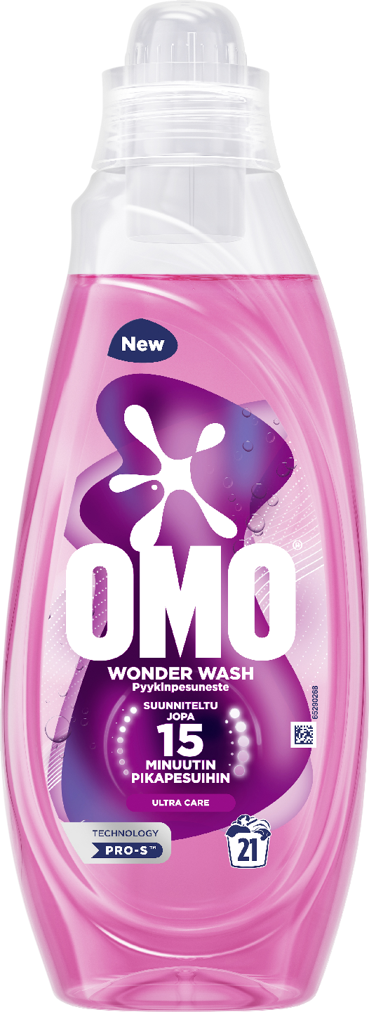 Etsitkö pyykinpesunestettä, joka sopii pikapesuohjelmiin? Omo Wonder Wash Ultra Care pyykinpesuneste on suunniteltu toimimaan erinomaisesti myös lyhyemmissä pikapesuohjelmissa. Tämä pyykinpesuneste suojaa ja elvyttää värejä, mikä auttaa pitämään vaatteesi raikkaana ja kirkkaana pidempään. Omo Wonder Wash Ultra Care pyykinpesuneste suojaa tekstiilikuituja ja ehkäisee vaatteiden nyppyyntymistä, mikä auttaa vaatteita säilymään hyväkuntoisina pitkään. Sano hyvästit näkymättömälle lialle ja hielle, sillä nopeasti vaikuttava koostumuksemme, joka on varustettu PRO-S teknologialla* poistaa tahrat ja pahan hajun vaatteista ja raikastaa ne vain 15 minuutissa. Omo Wonder Wash Ultra Care pyykinpesunesteen käyttäminen pikapesuohjelmassa on hyvä tapa säästää aikaa arjen kiireessä samalla kun vaatteesi puhdistuvat ja raikastuvat kuten pidemmissä pesuohjelmissa. Omo – Lika on hyväksi! Ole tiukka tahroille – ja ystävällisempi ympäristölle. Haluamme varmistaa, että pesuaineemme – jauheemme, nesteemme ja kapselimme – tekevät arjesta helpompaa. Käyttöohje: Kaada 40 ml Omo Wonder Wash Ultra Care pyykinpesunestettä pyykinpesukoneesi pesuainelokeroon tavallisiin (4-5kg) koneellisiin ja pikaohjelmiin (2 kg) tai kun peset pehmeällä tai keskikovalla vedellä. Käytä 50ml pyykinpesunestettä suurempiin (6-8kg) koneellisiin tai kun peset kovalla vedellä. Otathan ensimmäisenä huomioon vaatteen oman pesu- ja hoito-ohjeen. Pese tummat vaatteet keskenään. Kokeile pesuainetta aina ensiksi huomaamattomaan kohtaan ennen kuin esikäsittelet uusia värillisiä vaatteita pyykinpesunesteellä. Älä käytä tuotetta silkki- tai villavaatteisiin. *PRO-S teknologia on patentoitu ja suojattu tavaramerkillä.