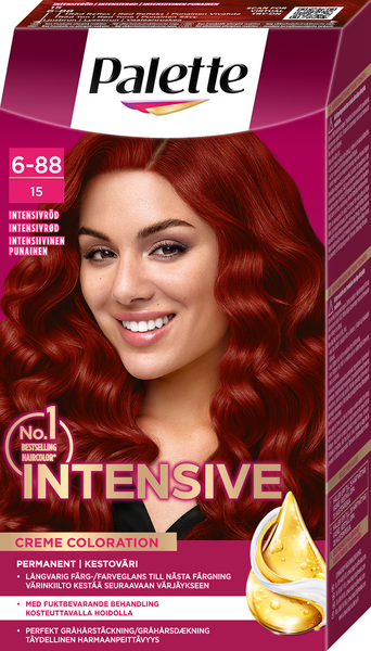 Palette Intensive Creme Coloration 6-88 Intensiivinen Punainen – Intensive-värin riemua. Kestoväri, joka peittää 100 % harmaista
