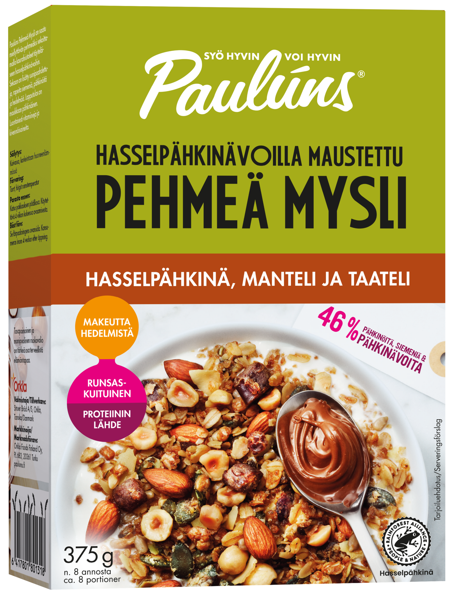 Paulúns pehmeä mysli hasselpähkinä, manteli ja taateli 375g