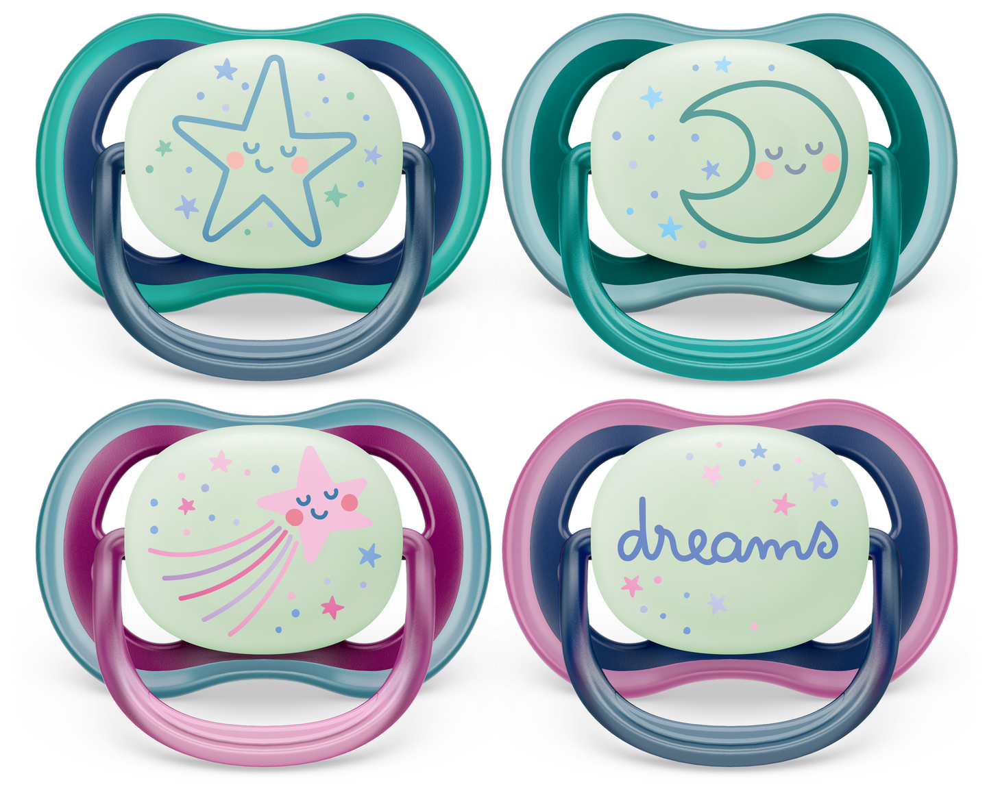 Antaa vauvan ihon hengittää. Helppo löytää pimeässä. Rauhoittava, tehokas ilmankulku. Philips Avent ultra air -tutin erityisen suuret ilma-aukot pitävät ihon kuivana. Tutissa on pimeässä hohtava painike, joten se näkyy myös pimeässä. Saatavilla eri väreissä ja tyyleissä.
