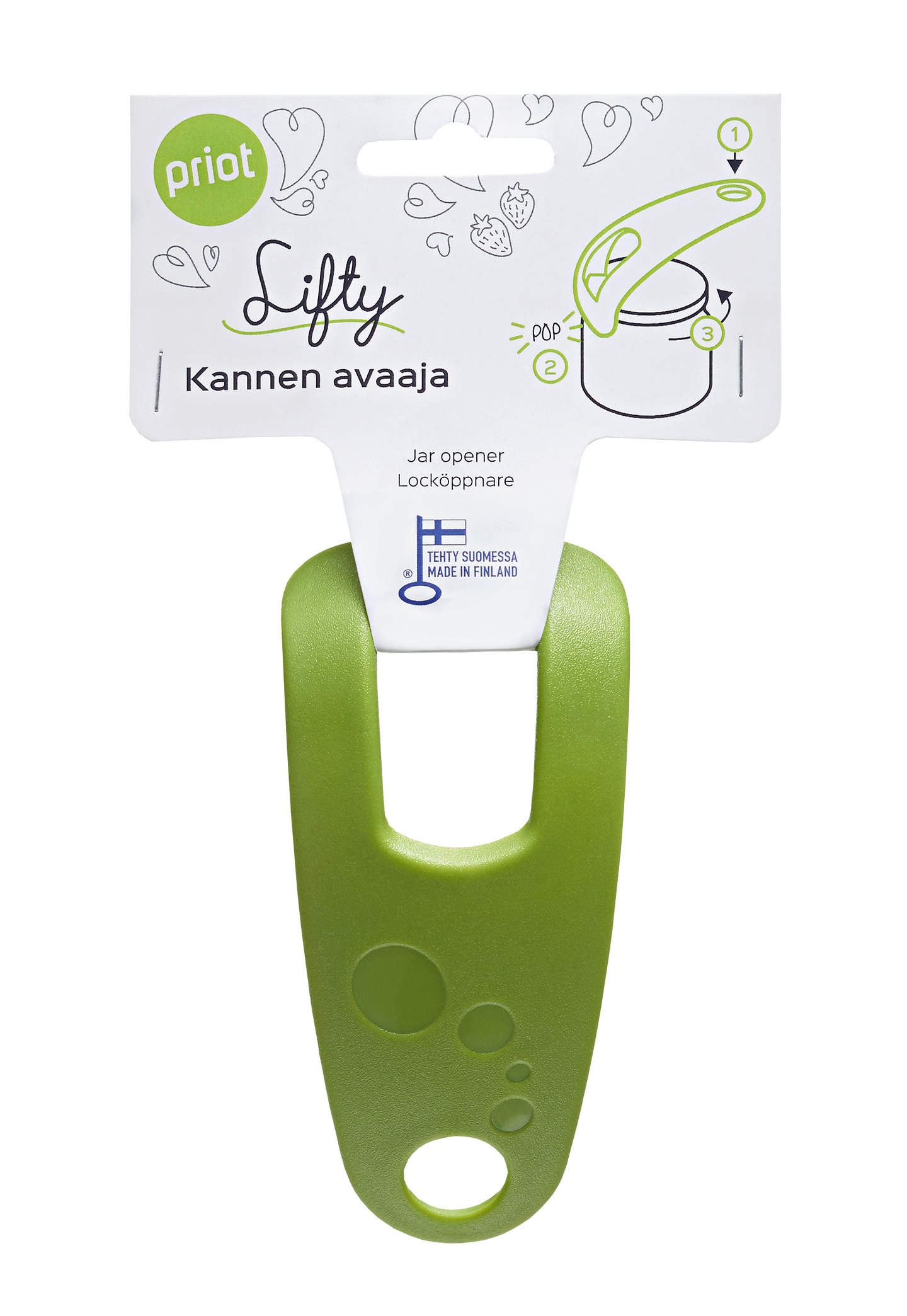 Priot Lifty -kannenavaaja auttaa sinua avaamaan vaikeimmatkin purkkien kannet, niin suuret kuin pienet – ei enää vääntämistä tai voimankäyttöä. Nokkela muotoilu mahdollistaa hyvän ja tukevan otteen, jolla saat kannen ilmattua näppärästi ilman voimaa.