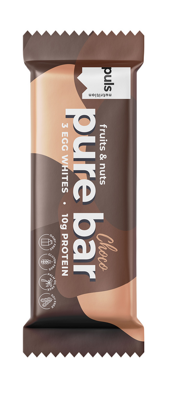 MaidotonPULS PURE proteiinipatukka on herkullinen runsaskuituinen välipalapatukka, joka sisältää vain aitoja ainesosia. Proteiinin lähde on munanvalkuainen. Gluteeniton, maidoton, soijaton.