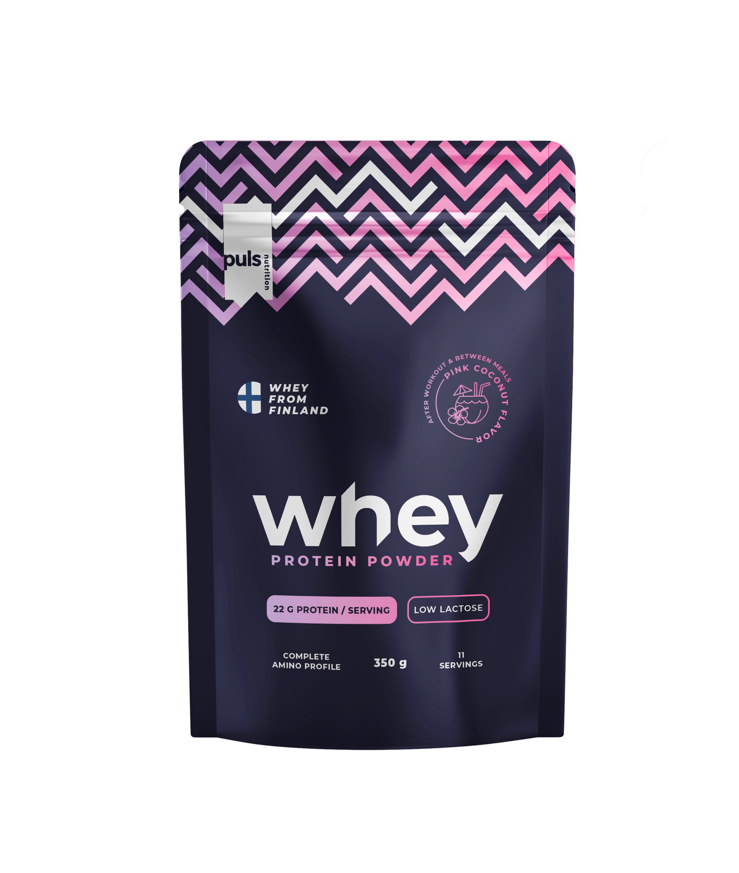Puls Whey heraproteiinijauhe 350g pinkki kookos