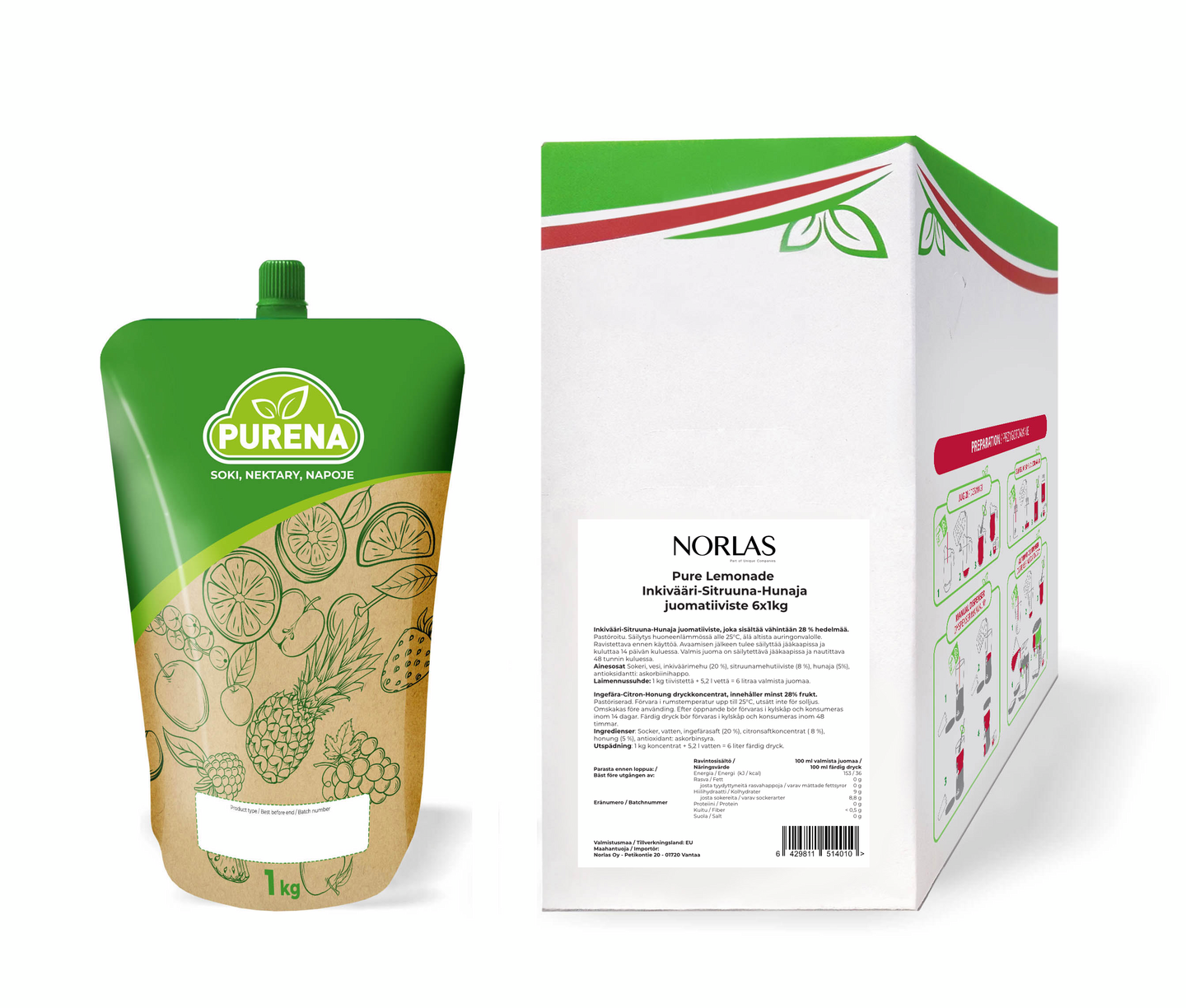 Inkivääri-sitruuna-hunaja limonadi sisältää tuorepuristettua inkiväärimehua ja sen mehupitoisuus on 28%. Pure lemonadet valmistetaan laadukkaista raaka-aineista, ja maistuvat aivan aidolle kotitekoiselle limonadille. Ne eivät sisällä säilöntäaineita, makeutusaineita tai stabilointiaineita. Tuotteet myydään tiivisteinä, pakattuina kevyisiin pusseihin, joten ne vähentävät tehokkaasti tarvittavien pakkausmateriaalien määrää.