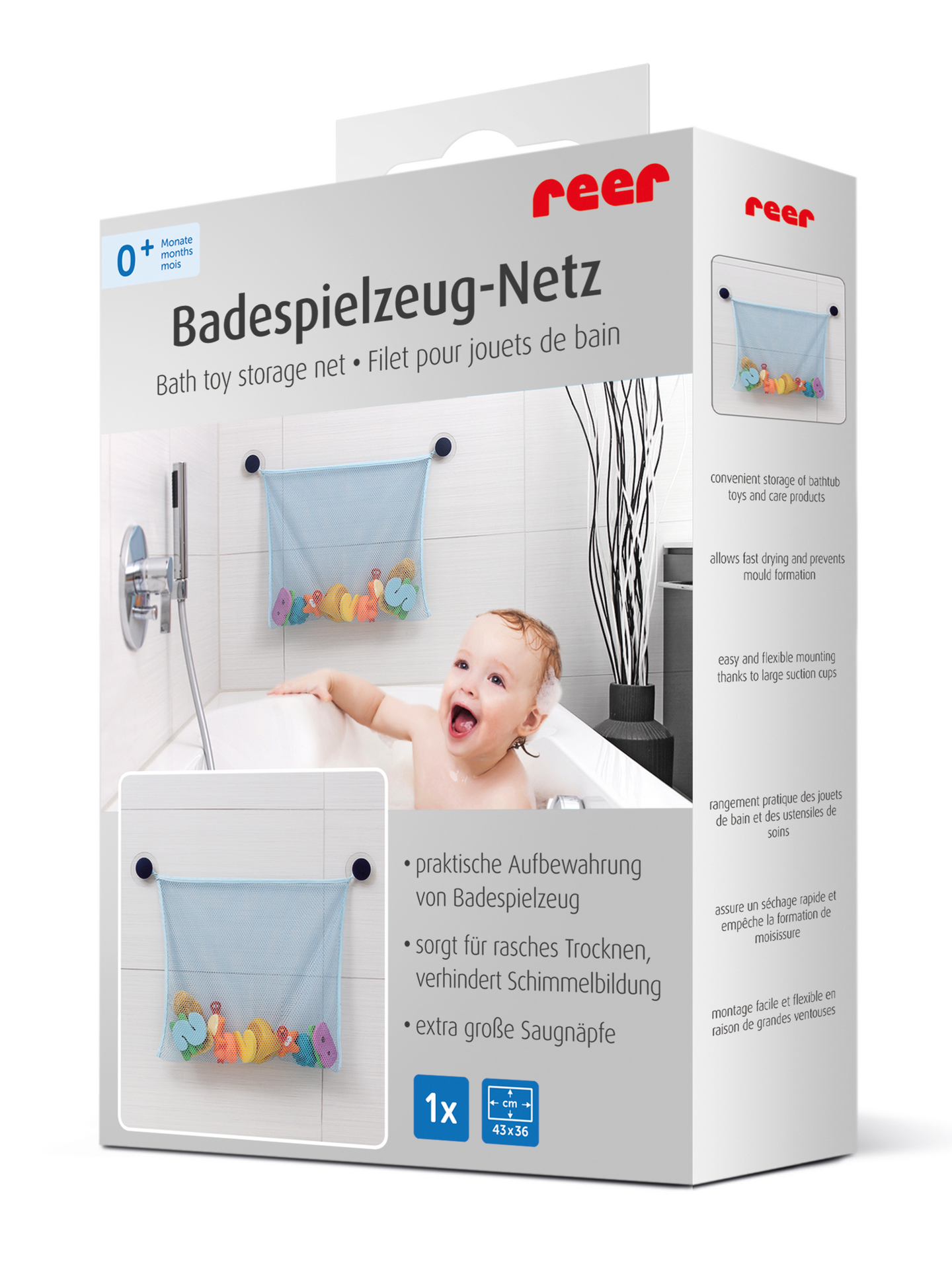 Käytännöllinen säilytysverkko pitää kylpylelut järjestyksessä ja antaa niiden kuivua hyvin. Verkko on helppo kiinnittää kaakeliin, saunanoveen tms. mukana tulevilla suurilla imukupeilla. Nopea kuivuminen estää homeen syntymistä.