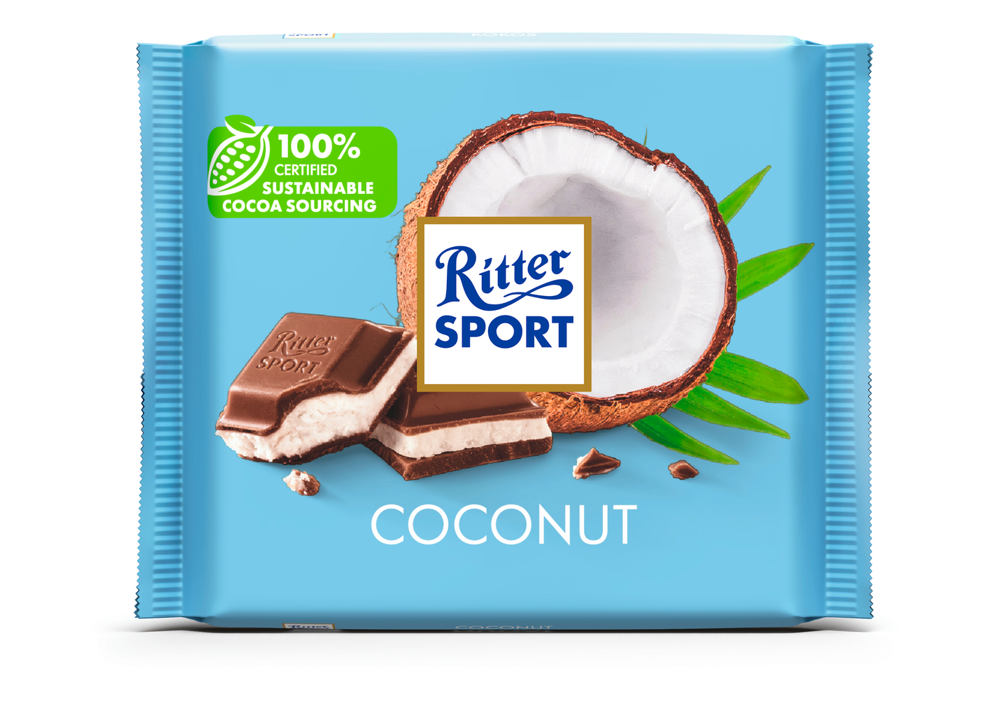 Ritter Sport Coconut -kookossuklaalevymme muistuttavat kookosta, mutta se on paljon helpompi avata. Rapeaksi kuivattu kookospähkinä antaa hienolle maitokreemille sen erityisen eksoottisen maun, joten tämän tuotteen avulla voit kokea tropiikin mihin aikaan vuodesta tahansa.