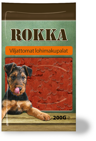Miedosti lohelta maistuvat ja tuoksuvat luunmuotoiset Rokka Lohimakupalat ovat erinomaisia kiitos- ja koulutusherkkupaloja koirille. Makupalojen pehmeän, puolikostean koostumuksen ansiosta ne voidaan tarvittaessa puolittaa, jolloin niiden käytöstä tulee sujuvampaa pienen koiran palkkauksessa. Erityisesti kalan ystävien maistuva herkku, jonka tuoksu ja maku motivoivat huippusuorituksiin!