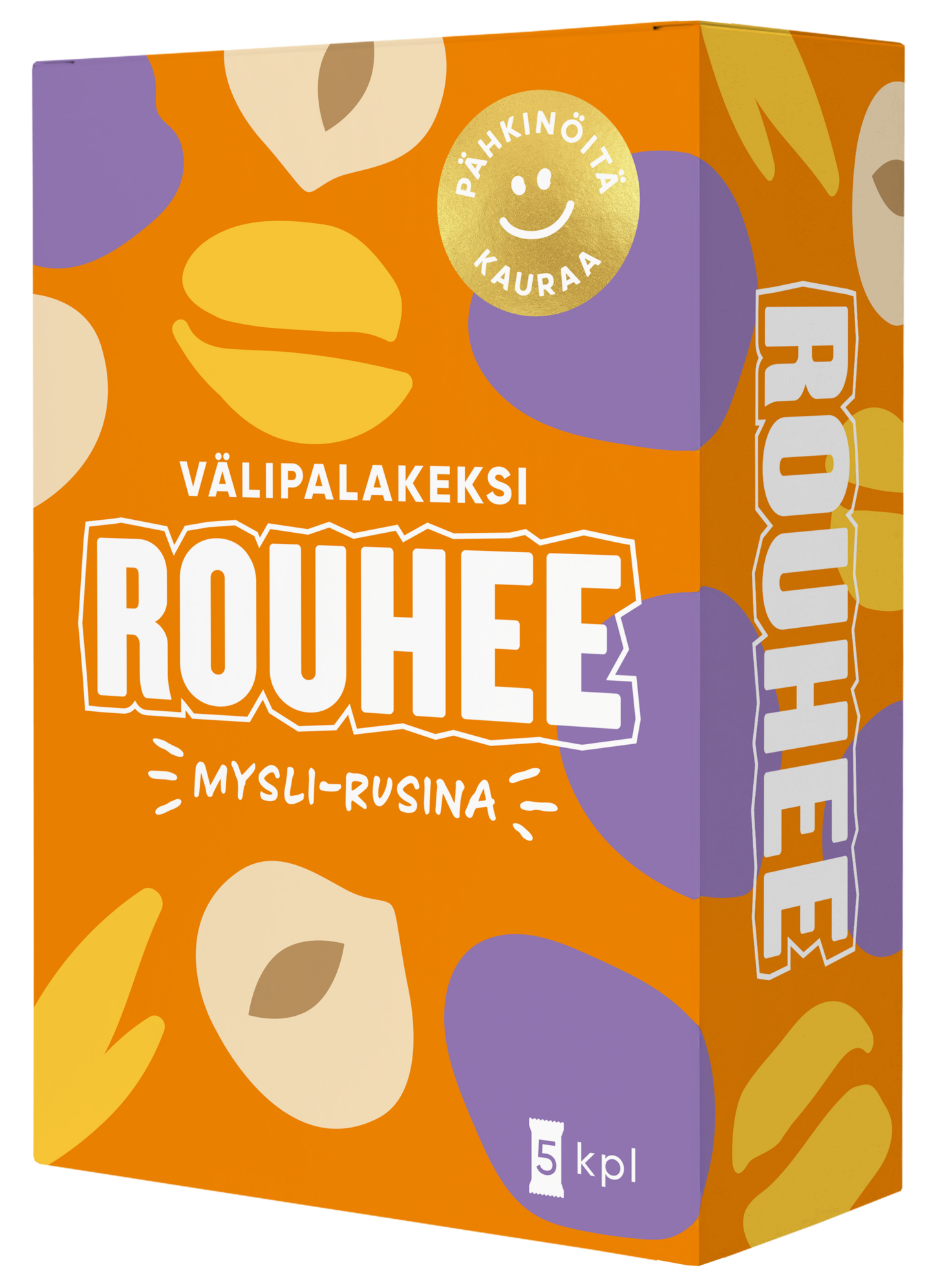 VegaaninenRouhee on heille, jotka rakastavat herkullisia välipalahetkiä. Rouskuvaa mysliä, rusinaa, hasselpähkinää ja kuiturikasta kauraa. Rouhee on välipalakeksi jossa on vähemmän sokeria ja enemmän aitoja raaka-aineita. Uunissa herkulliseksi paahdettu Rouhee on täydellinen välipalanautinto. Kätevä monipakkaus sisältää 5 yksittäispakattua välipalakeksiä.