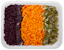 VegaaninenPerinteinen, herkullinen rosolli valmistetaan punajuuresta, porkkanasta, kurkusta ja sipulista. Raaka-aineet ovat omina, siisteinä raitoinaan rasiassa.