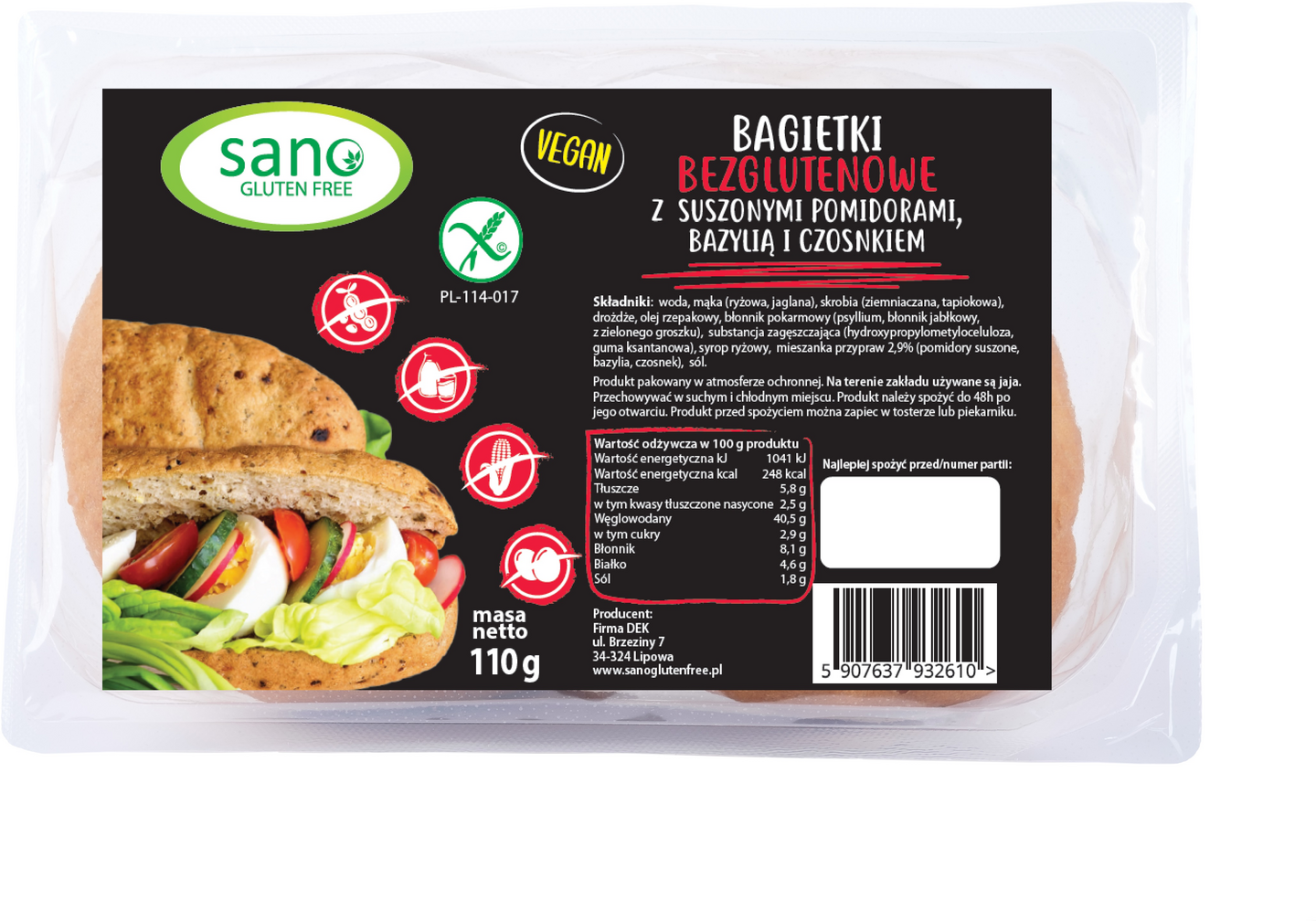 Sano patonki aurinkokuivattu tomaatti-basilika-valkosipuli gluteeniton 110g/2kpl