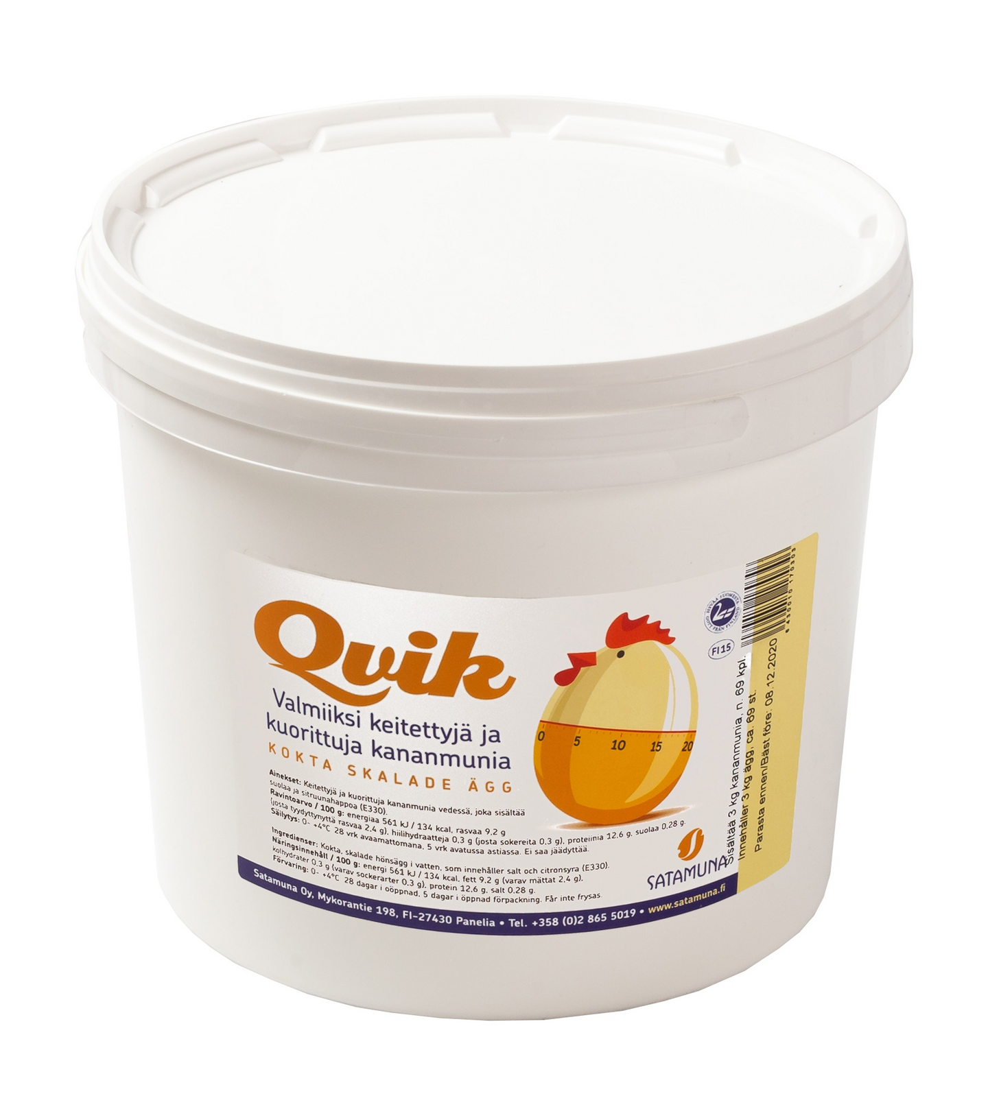 Satamuna Qvik keitetty ja kuorittu kananmuna 5,4kg/3kg