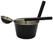 Alumiinista valmistettu löylykauha jossa on pyökkinen kahva.