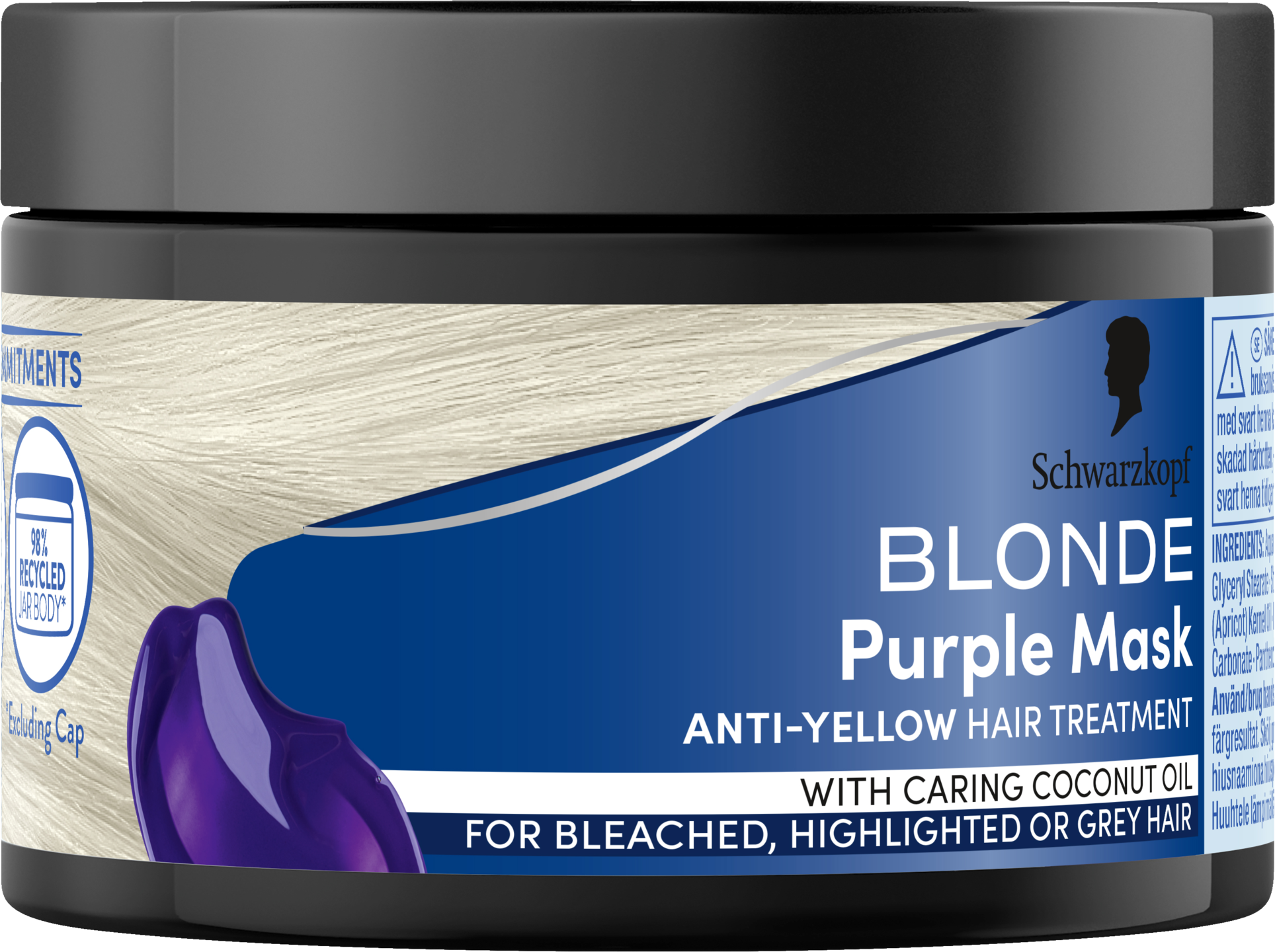 Schwarzkopf Blonde Purple -hiusnaamio ravitsee vaalennuksesta rasittuneita hiuksia ja poistaa keltaisuutta. Korkealaatuinen hiusnaamio violeteilla pigmenteillä raikastaa vaalean hiusvärin poistamalla ei-toivottuja keltaisia vivahteita vain 2-3 minuutissa. Sisältää hoitavaa kookosöljyä, lisää kiiltoa ja vähentää hiusvaurioita. Vegaaninen koostumus.