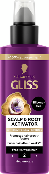 Tämä Gliss-seerumi heikoille ja hauraille hiuksille stimuloi ja vahvistaa juuria ja tehostaa karvatuppien toimintaa jättämättä jäämiä hiuksiin tai tyynyyn. Hiusten tyviboosterissa on miellyttävä myskin tuoksu, ja sen koostumus sisältää 96 % luonnollista alkuperää olevia ainesosia, ml. vettä. Gliss-hiustuotteet ovat PETA:n hyväksymiä**. Koostumus on myös silikoniton ja vegaaninen***.
