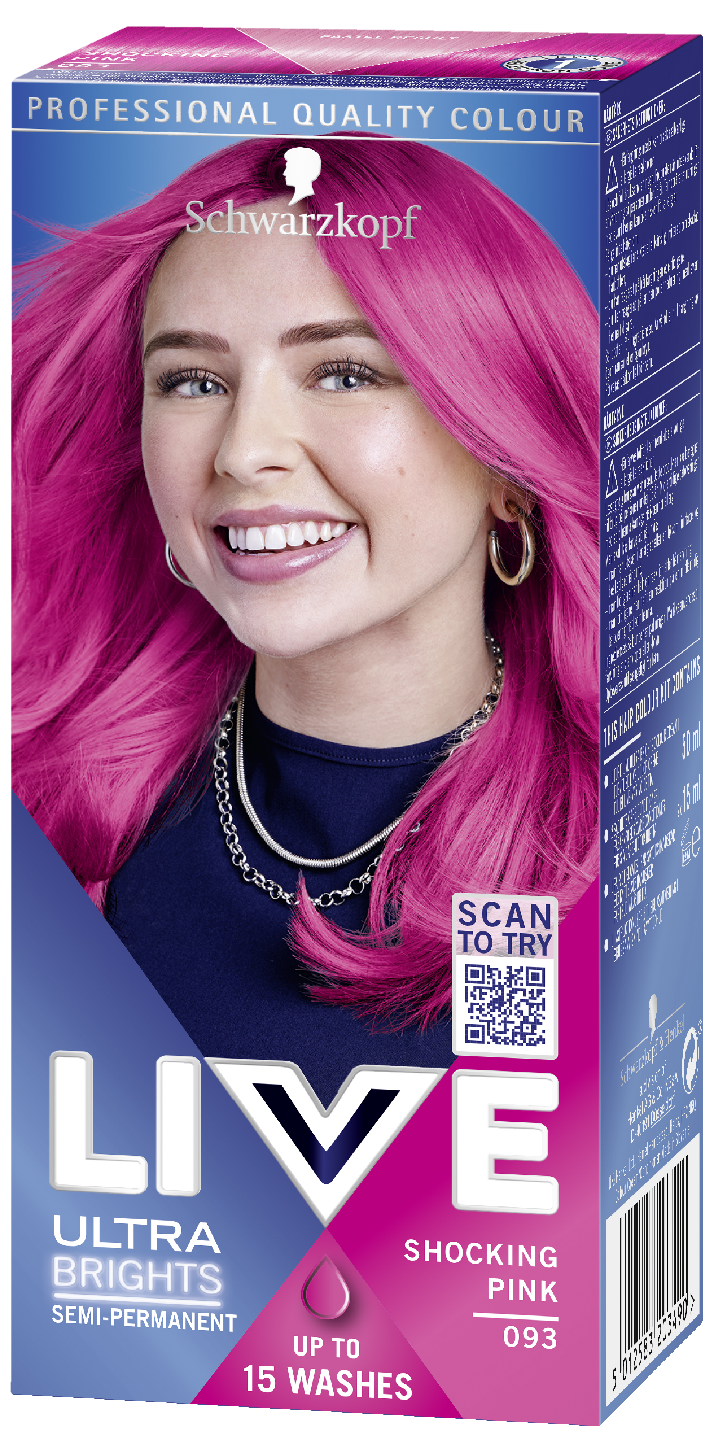Schwarzkopf LIVE Ultra Brights -hiusväreillä vain taivas on rajana! 15 pesun ajan kestävillä suoraväreillä saat kirkkaan värin, upeat raidat tai hienot tehosteet. Säväytä vaikka uudella värillä joka kuukausi! Sopii sekä luonnollisen värisille että värjätyille hiuksille.