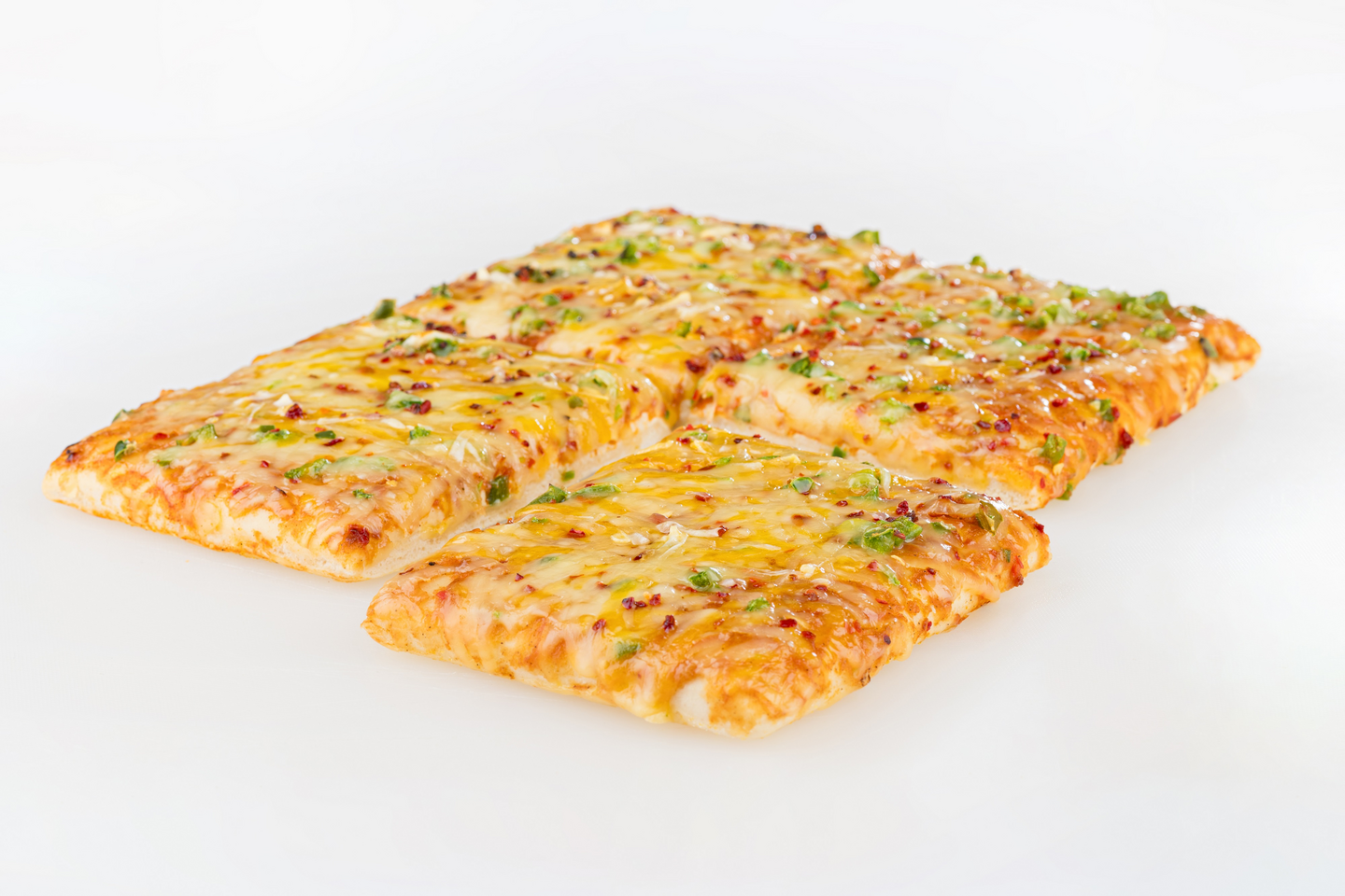 LaktoositonHerkullisen juustoinen palapizza, jossa chilisen vivahteen tuo vihreä jalapeno. Helppo valmistaa. Voidaan pitää tarjoiluvalmiina 65 °C:ssa 90 minuuttia. Pizza on laktoositon.
