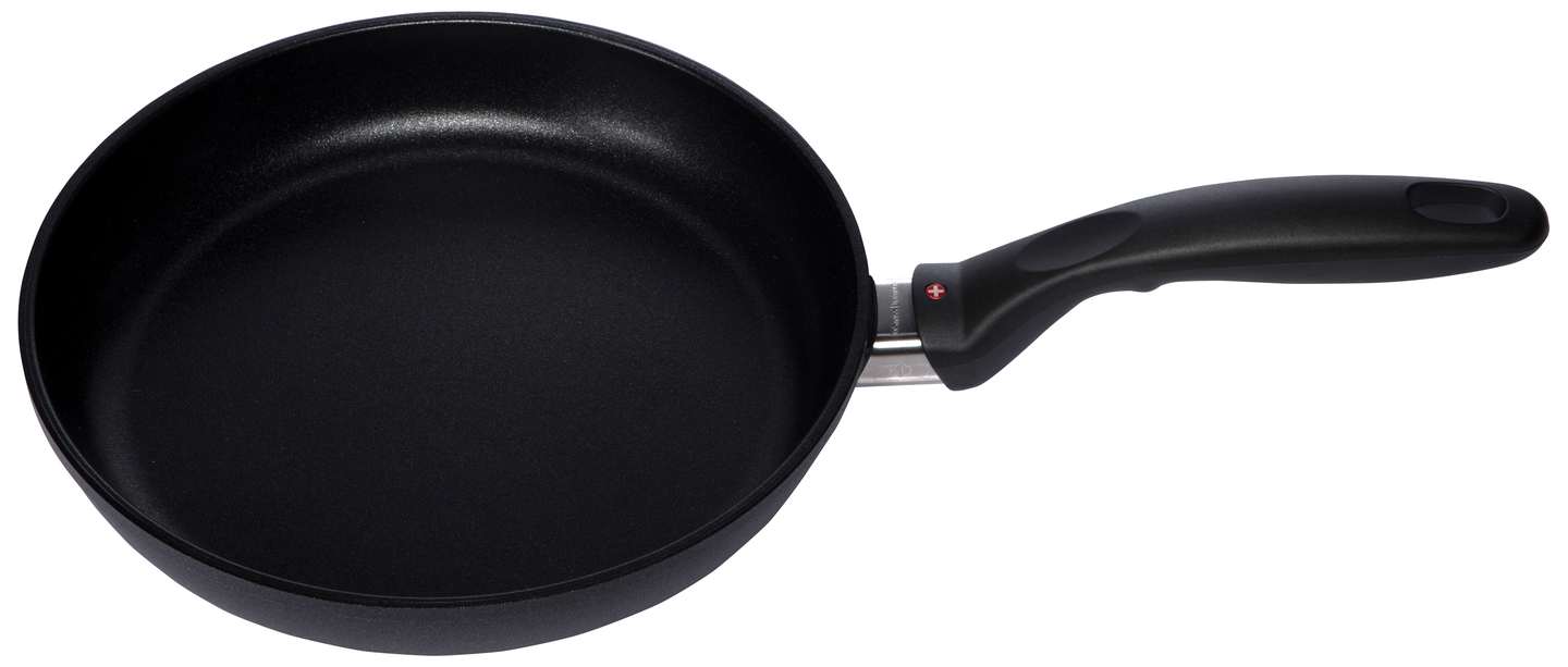 Swiss Diamond -paistinpannu on varustettu tasaisesti ja tehokkaasti lämpenevällä, paksulla valualumiinirungolla sekä erittäin kestävällä, lämpöä johtavalla kolmikerroksisella XD-timanttipinnoitteella. Timanttihiukkaset johtavat lämpöä tehokkaasti ja nopeasti. Valualumiinirunkoisessa paistoastiassa lämpö jakautuu tasaisesti myös pannun laitoihin, mikä varmistaa ruoka-aineiden tasaisen kypsymisen. Paksu pohja varaa lämpöä hyvin, joten pannu pysyy kuumana myös suuria määriä paistettaessa. Kauniin ruskea paistopinta muodostuu jo kohtuullisissa paistolämpötiloissa. Pannu kestää uuninlämpöä 260 °C saakka, ja sen kahva pysyy viileänä liedellä käytettäessä. Pannun halkaisija on 26 cm, ja reunan korkeus sisäpuolelta mitattuna 4 cm. Se on valmistettu Sveitsissä lähes 100-prosenttisesti kierrätetystä alumiinista. Suositellaan käsinpesua. Soveltuu myös induktioliedelle.