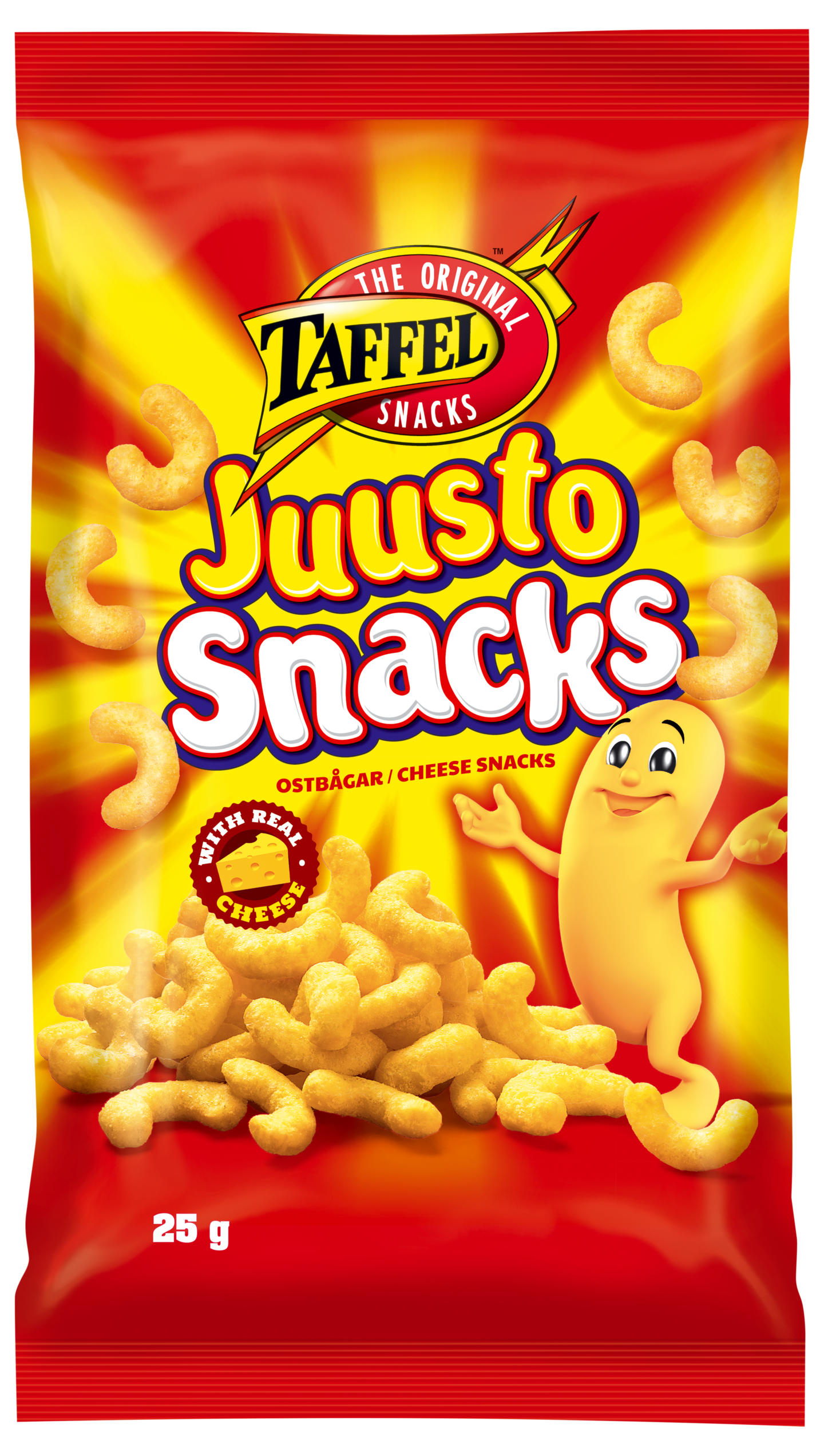GluteenitonEnsimmäinen, aito, oikea juustosnacks on Taffel Juusto Snacks. Se on jo sukupolvien ajan, vuodesta 1986 koukuttanut aidolla cheddarjuustollaan ja herkullisella rapeudellaan.