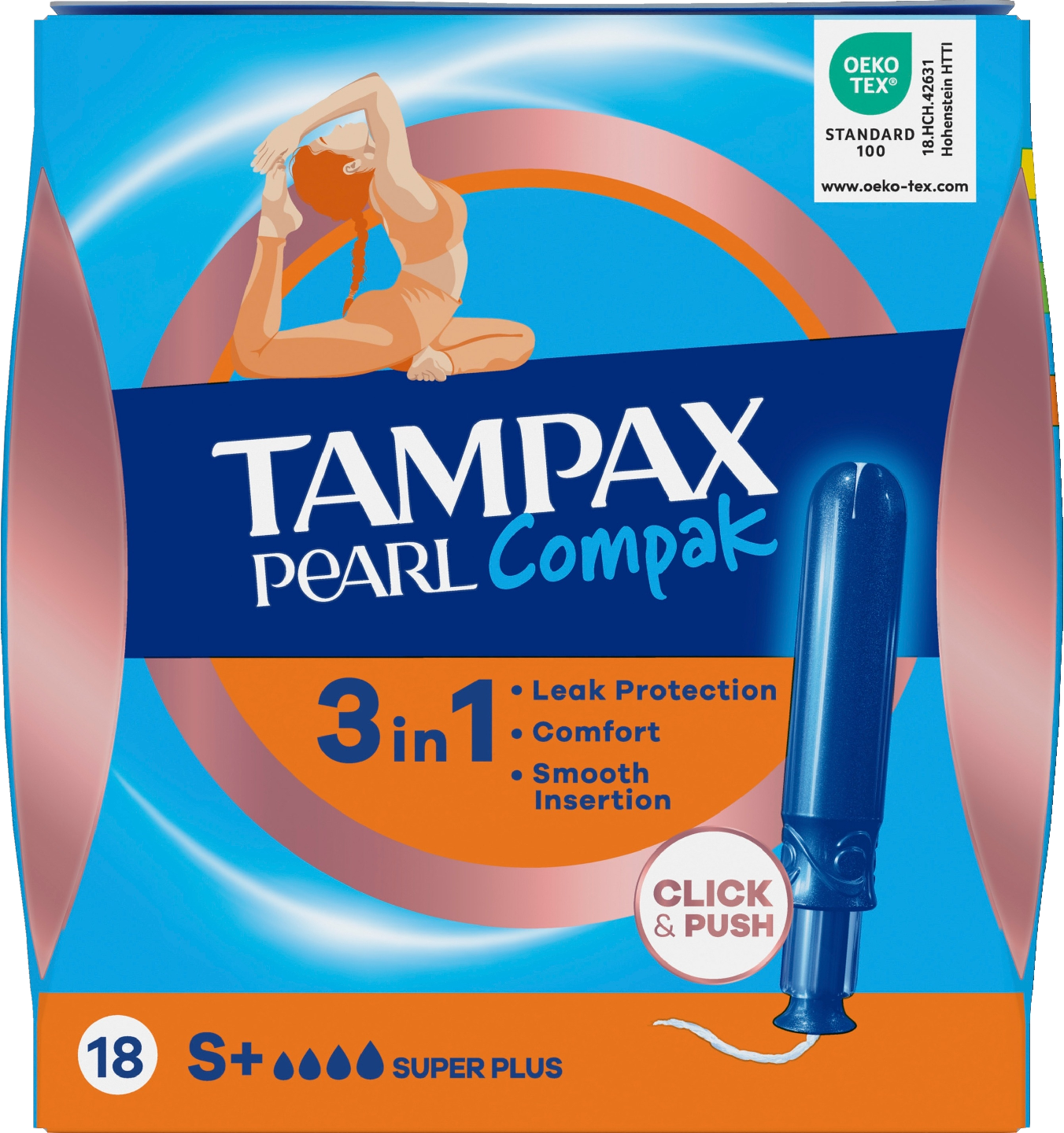Huomaamattomat Tampax Compak Pearl -tamponit tarjoavat parasta mukavuutta ja suojaa. Ne ovat hajusteettomia. Tampax Pearl Compak -tamponeissa on kompakti ja huomaamaton pehmeä muovinen asetin ja pyöristetty kärki, joka tekee asettamisesta miellyttävää. Muotoillun luistamattoman rakenteen ansiosta asettimesta on helppo pitää kiinni ja se on helppo asettaa paikalleen. Tampax Pearl Compak -tamponissa on MotionFit-tekniikkaa, joka laajenee hellävaraisesti ja mukautuu kehosi yksilöllisiin muotoihin. Lisäksi siinä on LeakGuard-punos, joka auttaa pysäyttämään vuodot ennen niiden syntymistä. Tampax Pearl Compak -tamponeissa on näyttävät ja värikkäät kääreet, jotka pysyvät ehjinä käsilaukussa ja jotka on helppo avata äänettä. Tampax Pearl Compak Super Plus on Tampaxin paras tamponi runsas kuukautisvuotoon. Tampax Pearl Compak -tamponit ovat gynekologisesti testattuja. Ne on myös testattu riippumattomassa tutkimuslaitoksessa Oeko-Tex-standardin mukaisesti ja ovat tutkitusti haitta-aineettomia.