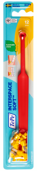TePe Interspace Hammasharja Soft Koko: Regular • Ienvetäytymien, implanttien, kiinteiden oikomiskojeiden tai taaimmaisen hampaan takaosan puhdistukseen. • Harjan kärki voidaan kiinnittää varren kummallekin puolelle eri kulmaan. • Mukana 12 vaihdettavaa harjaspäätä. Korvaamalla fossiiliraaka-aineen fossiilittomilla mäntyöljyillä olemme pienentäneet hammasväliharjan hiilijalanjälkeä 80 prosenttia – tuotteen laadusta, tehosta tai muotoilusta tinkimättä. Valmistettu Ruotsissa.