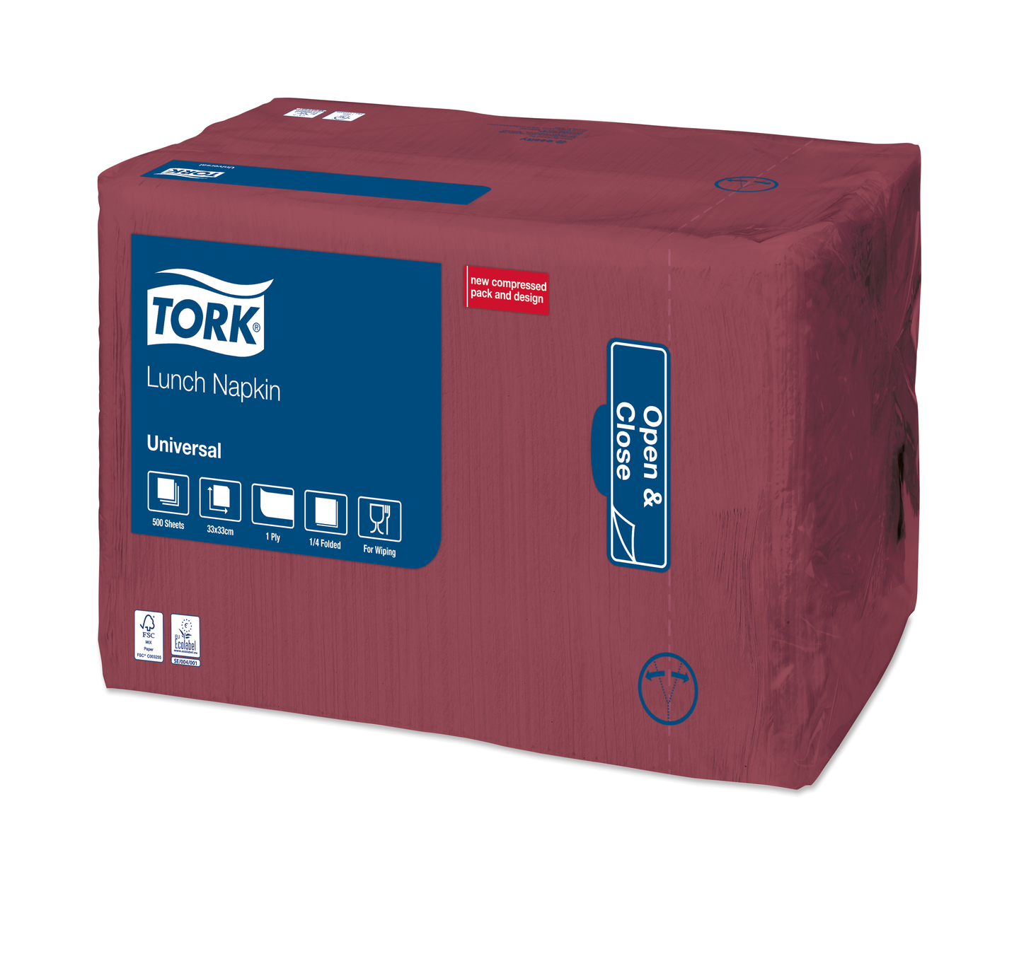 Tork Lunch lautasliina burgundy 32,5cm 1-krs 1/4-taitto 500kpl