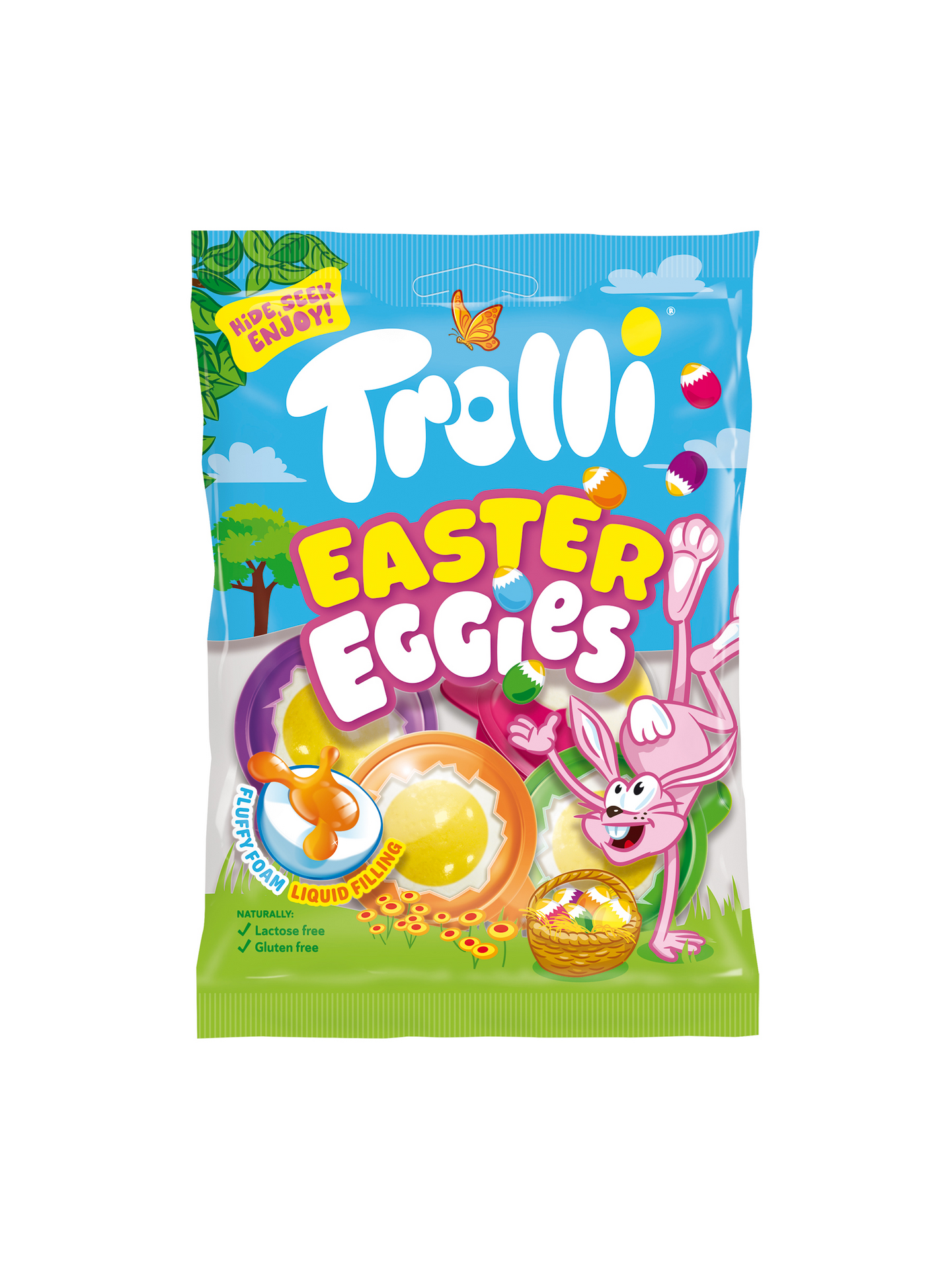 LaktoositonPääsiäismunien muotoisia vaahtomakeisia, joissa on nestemäinen täyte. Pehmeä koostumus, kirkkaat värit ja täyteläinen ydin tekevät niistä hauskan ja herkullisen pääsiäisherkun. Sopii täydellisesti virpojille!