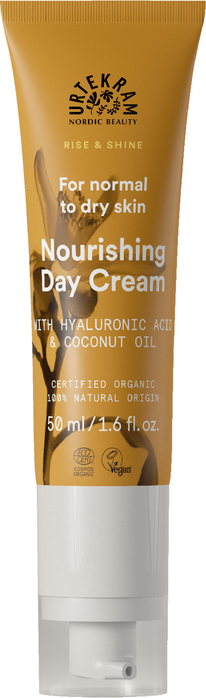 VegaaninenUrtekram Ravitseva päivävoide on luonnollisesti kosteuttava, ravitseva ja hoitava päivävoide kuivalle ja normaalille iholle. Kookosöljy, sheavoi, kauransiemenöljy ja hyaluronihappo tekevät ihosta pehmeän, tasapainoisen ja säteilevän. Ecocert Cosmos -luomusertifioitu, 100 % luonnollista alkuperää ja vegaaninen.