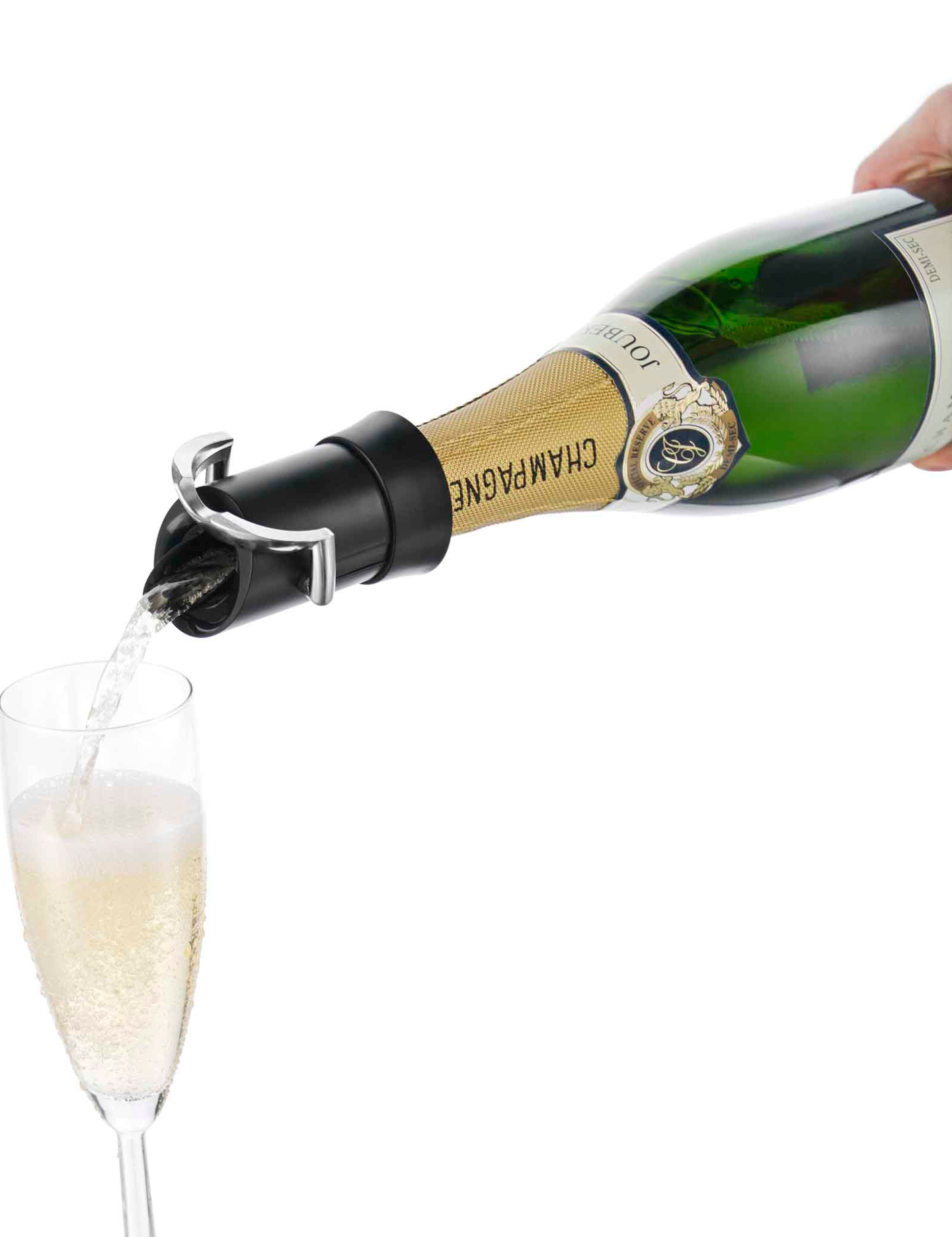 Patentoidun samppanjakorkin avulla juoma on helppo tarjoilla ilman tippoja, ja pullon voi myös sulkea kuplien säilyttämiseksi. Sopii useimpiin kuohuviinipulloihin.