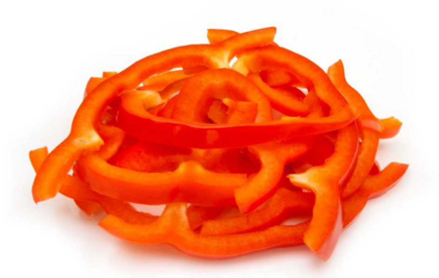 Valmix Paprikasuikale punainen on tuoretta punaista paprikaa suikaleeksi leikattuna, kooltaan noin 0,4-0,5 x 4-8 cm.