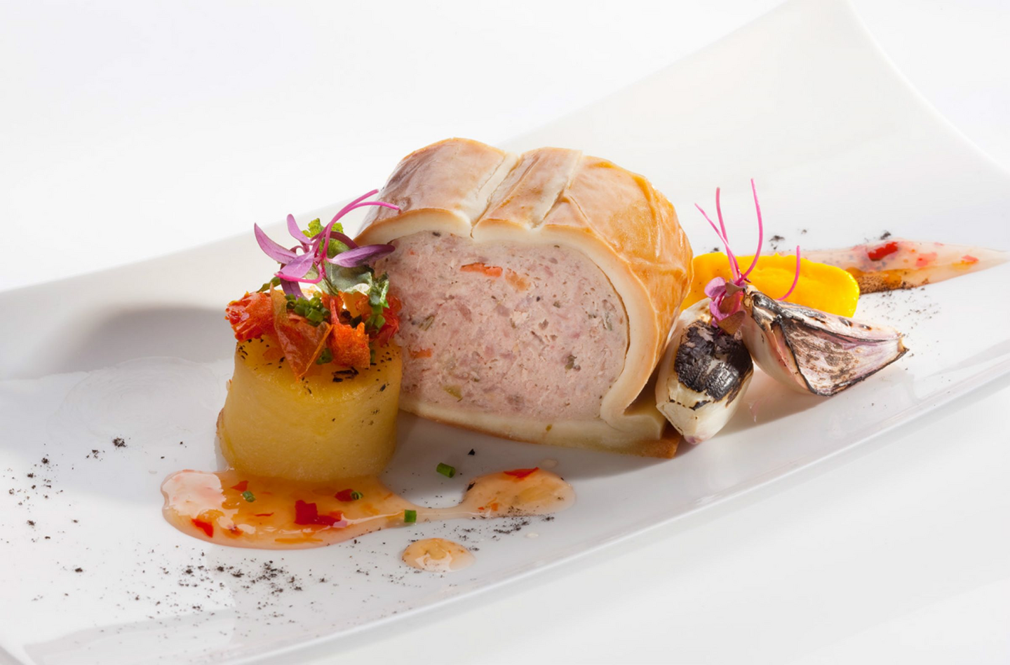 Taikinoitu lammaspate sopii hyvin viipaloituna noutopöytään tai annoksen yhdeksi komponentiksi.