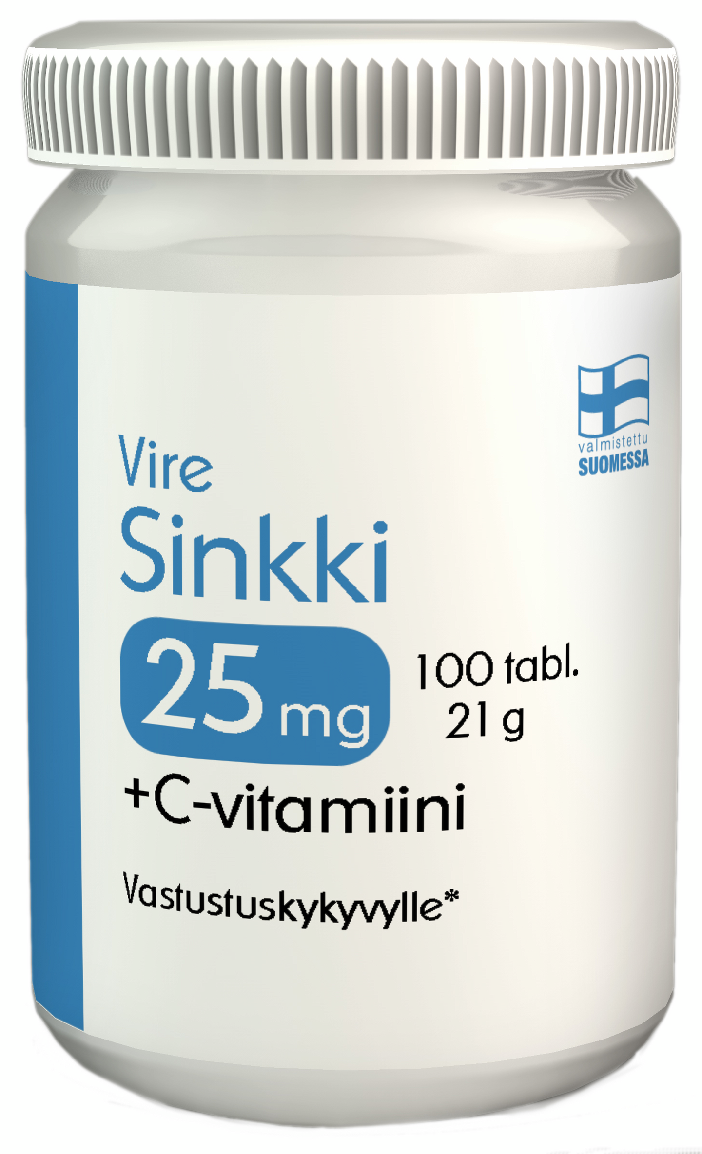 Vire Sinkki + C-vitamiinivalmiste Sinkki 25 mg + C-vitamiini 100tabl 21g