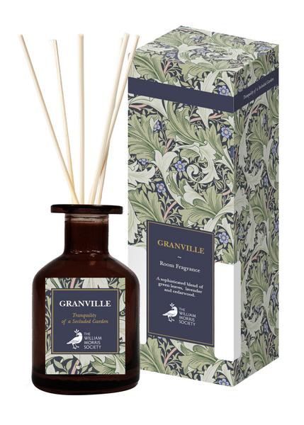 William Morris Granville huonetuoksu 100 ml. Tuoksun voimakkuutta pystyy säätelemään pulloon laitettavien tikkujen määrällä.